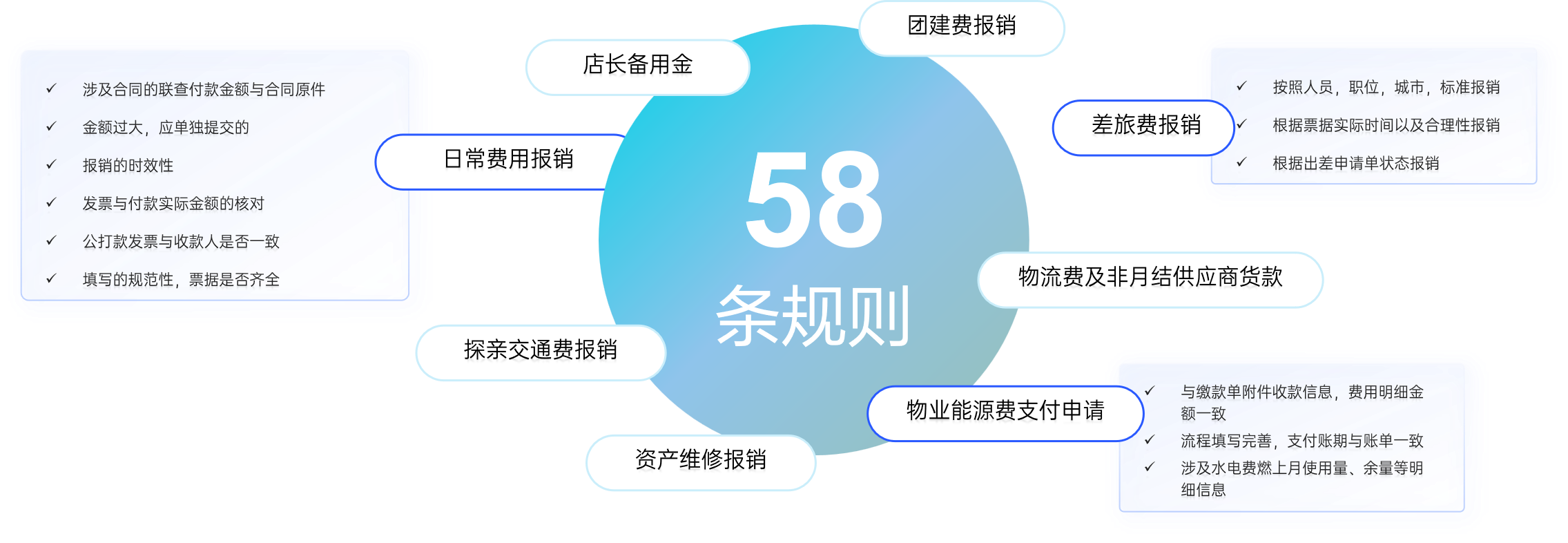 云海肴财务制度中,“团建费需附活动人数清单”等规则多为文字描述的 “隐形要求”,160 余家门店分散在不同城市,不同财务人员对规则的理解存在差异 —— 同一张差旅费单据,可能因审核人员不同出现 “通过” 或 “驳回” 两种结果,影响财务审批的权威性。