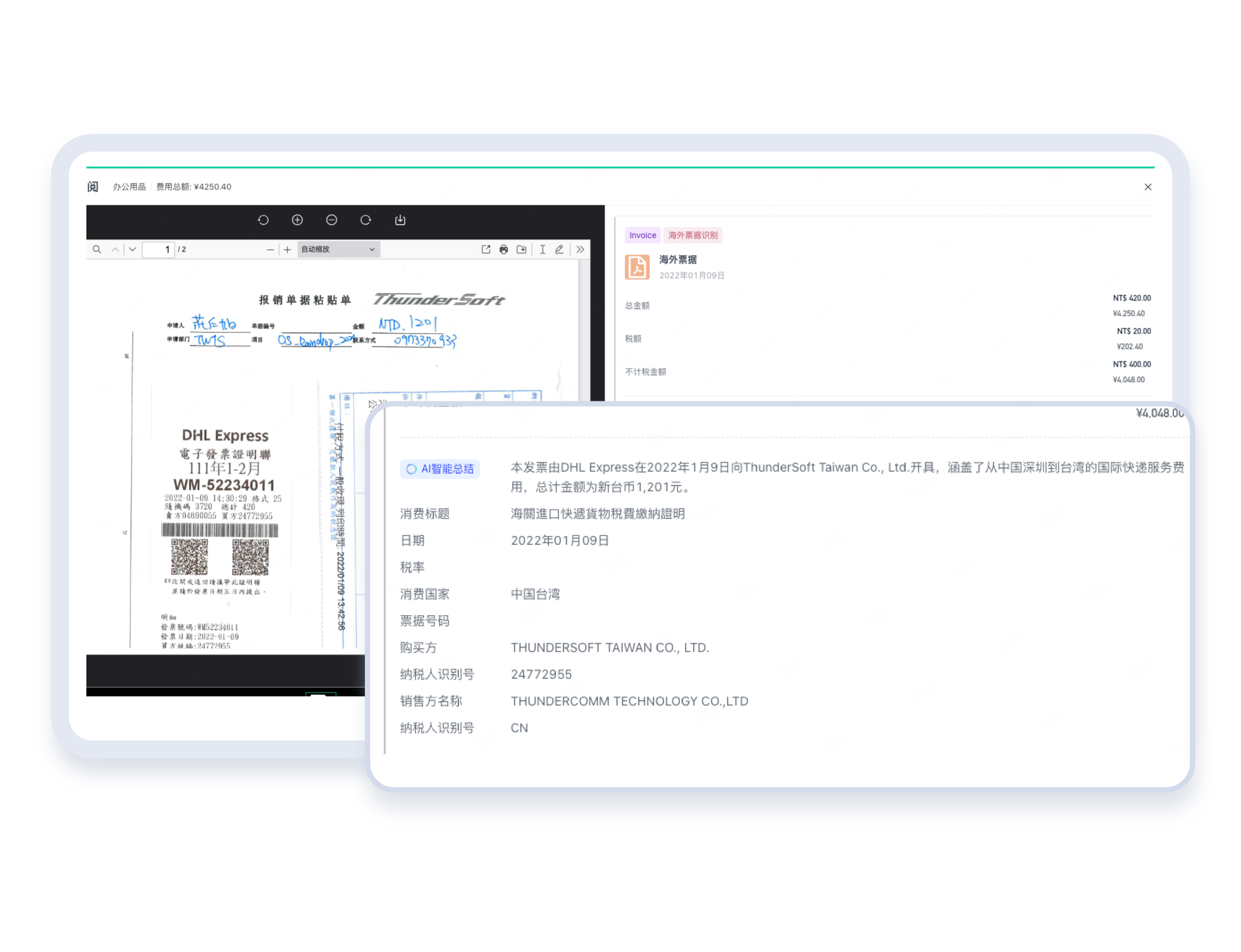 专为出海企业打造,支持全球语言小票、发票精准识别,一键完成自动翻译、结构化信息提取、多币种税额折算,让海外单据处理和国内业务一样简单高效。