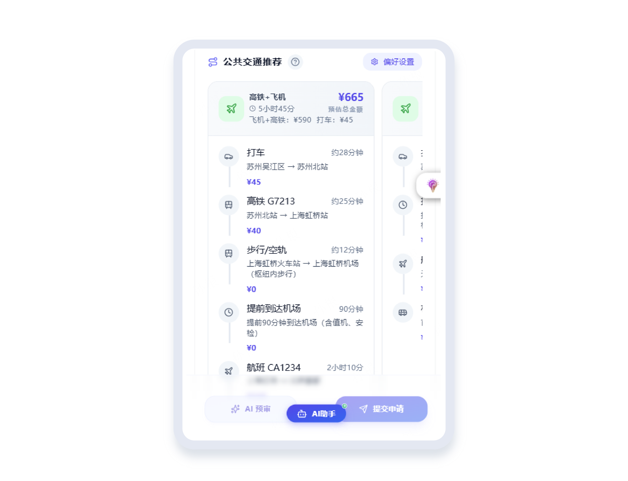 智能联动钉钉、飞书企业办公日程,当出差计划产生时,【行程助手】已自动完成全流程差旅方案规划;【订购助手】深度适配企业差标与员工出行偏好,精准筛选最优航班、酒店,一键完成从申请到预订的全链路服务,兼顾合规性与个性化需求。