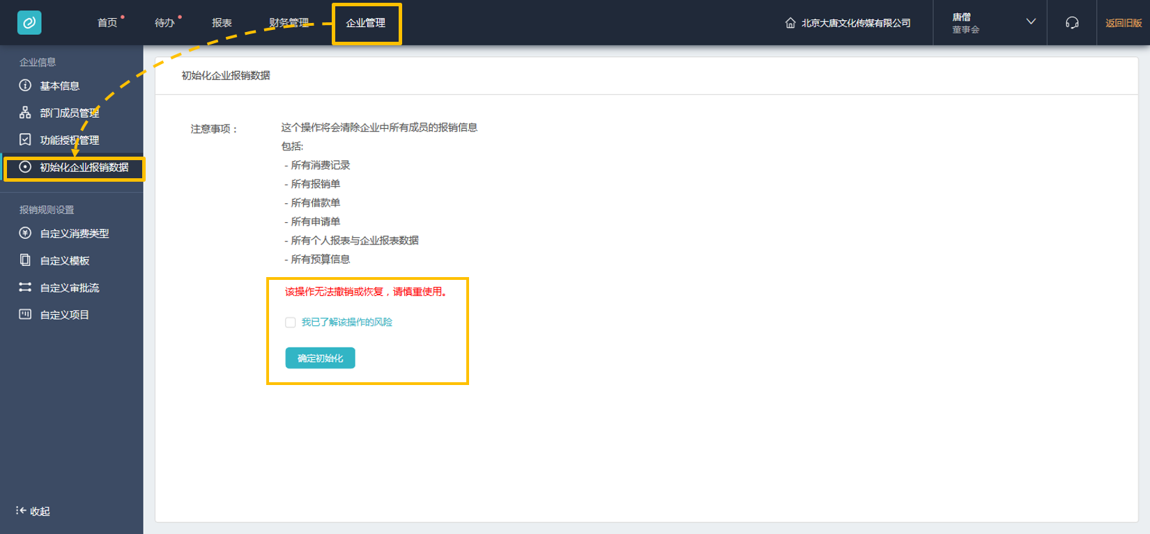 ,可以清除企业测试阶段所有的报销数据,初始化后,企业可以正式启用易快报。