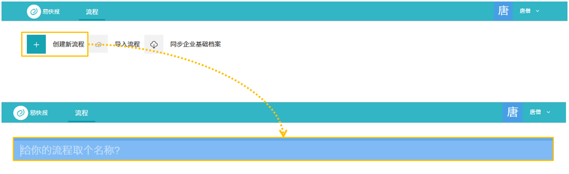 点击「创建新流程」按钮,在弹出的输入框输入流程名字,敲Enter回车键即可对此流程进行编辑。