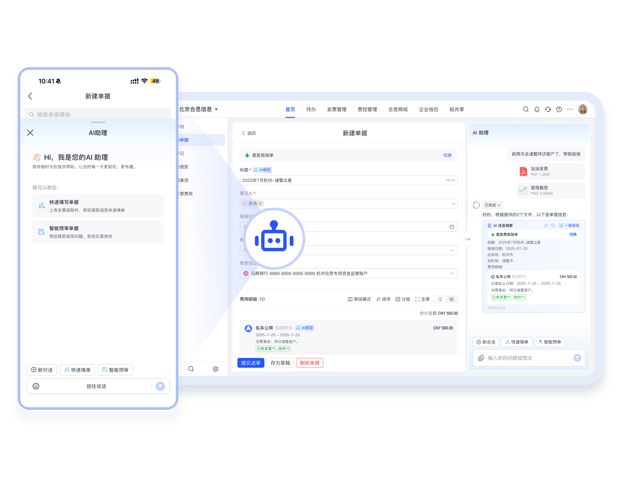 覆盖单一附件填单、多票据批量处理等多元业务场景,且支持 APP 端语音输入与移动化操作