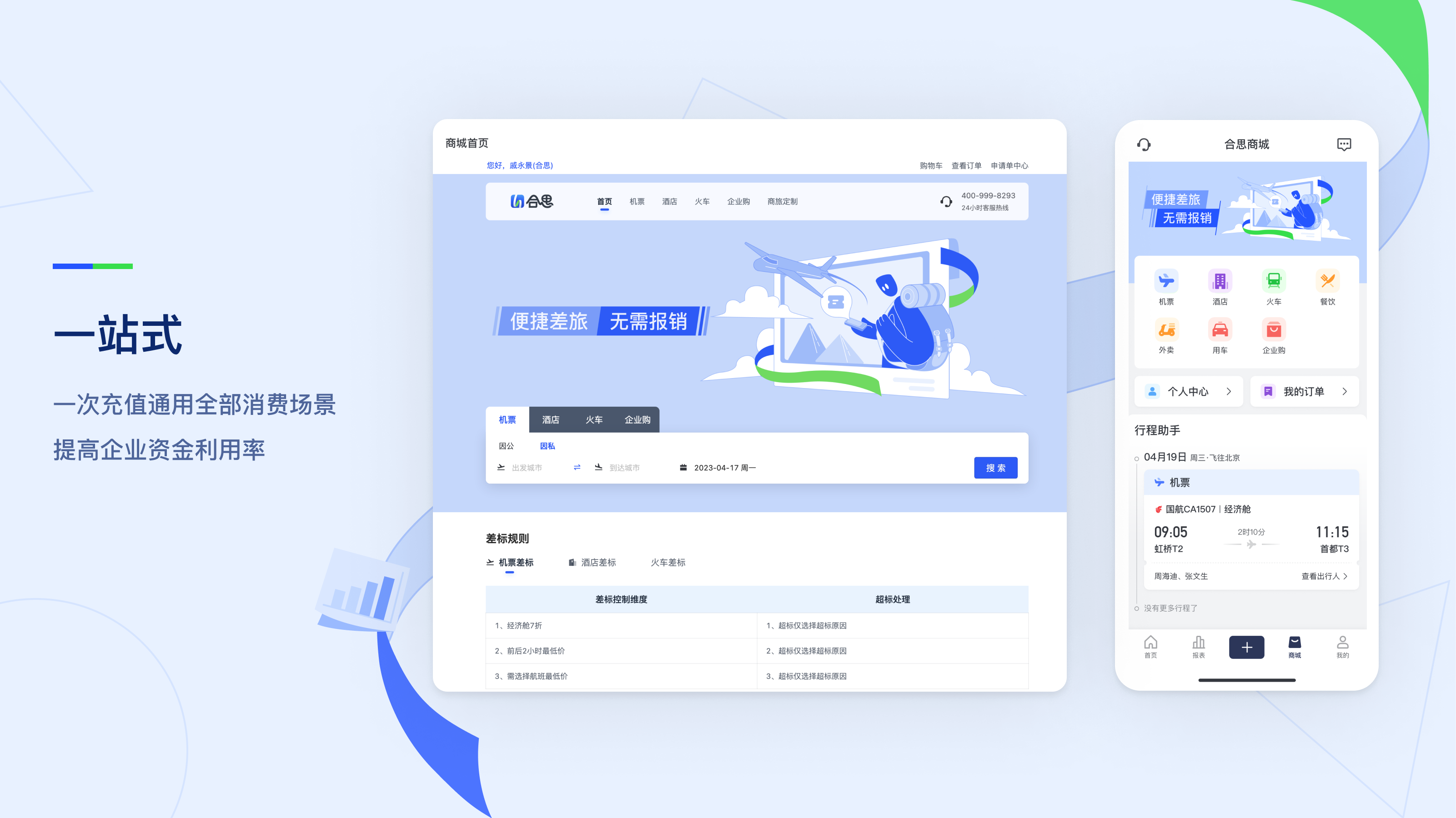 一站式搭建员工因公消费全场景方案,聚合差旅出行各大平台,支持企业预设预算,智能关联差旅申请,员工预定企业支付,真正实现费用管控和无需报销。