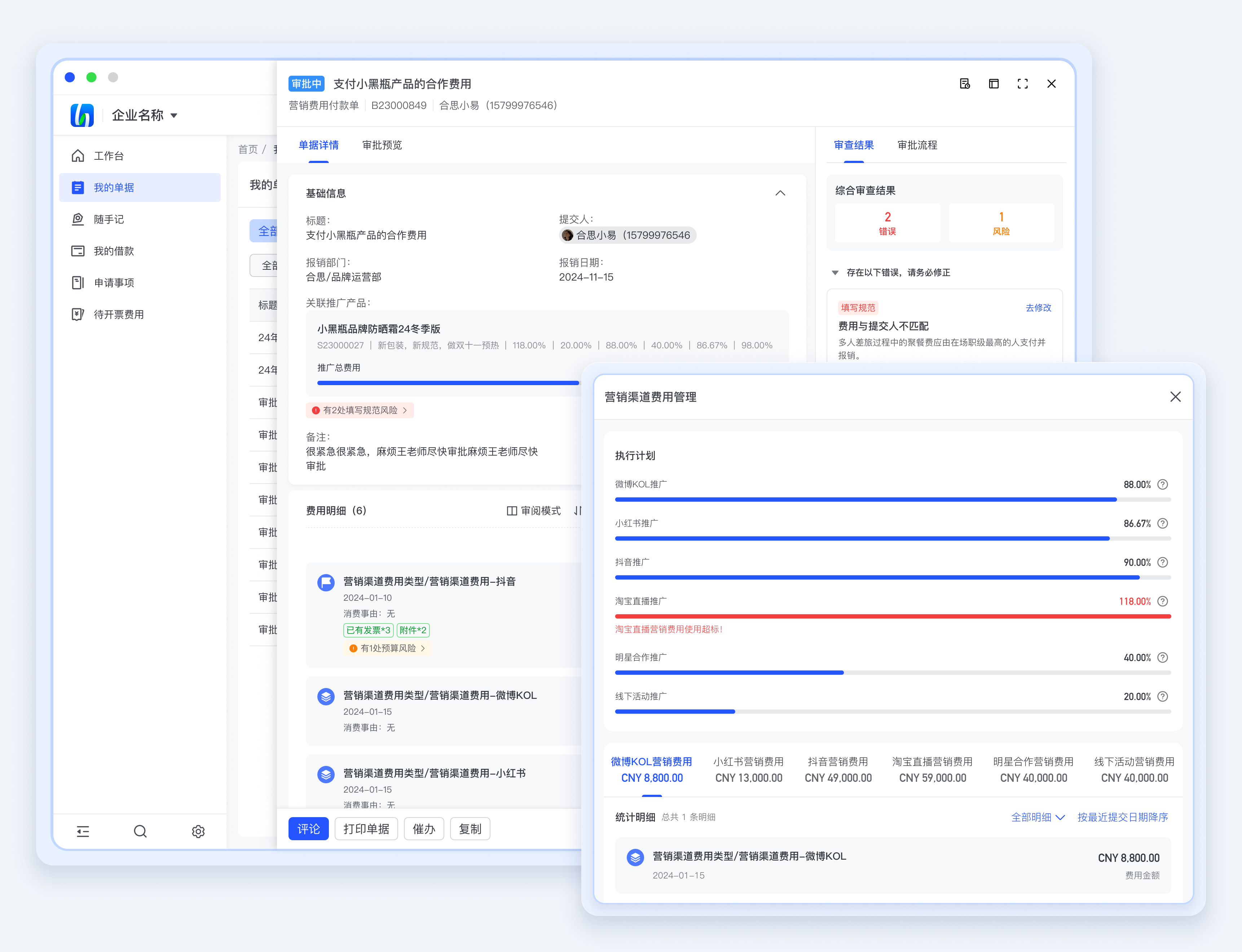 自动拦截违规行为 标识异常费用字段级