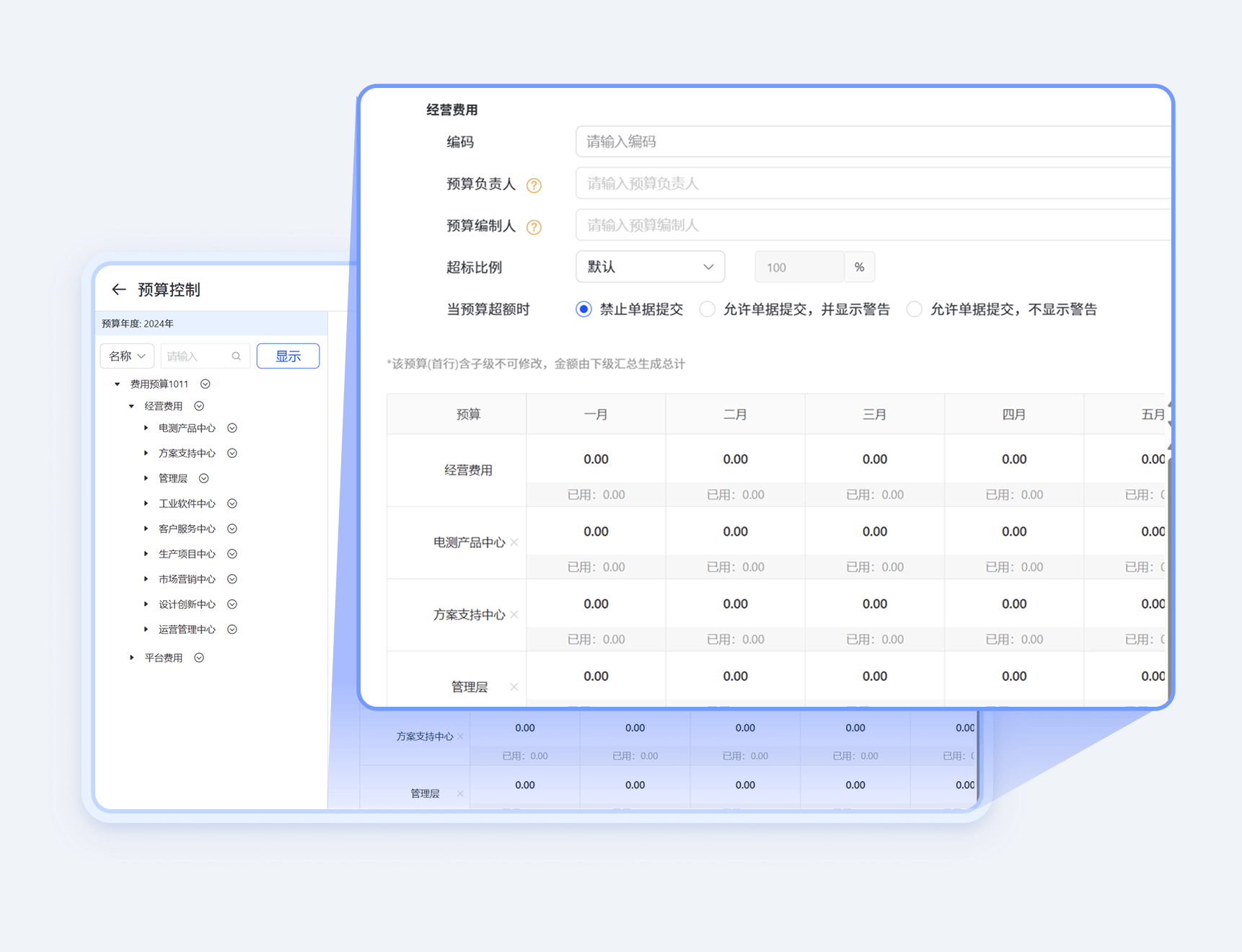 可自定义周期编制 可自定义档案分解预算 支持滚动预算
