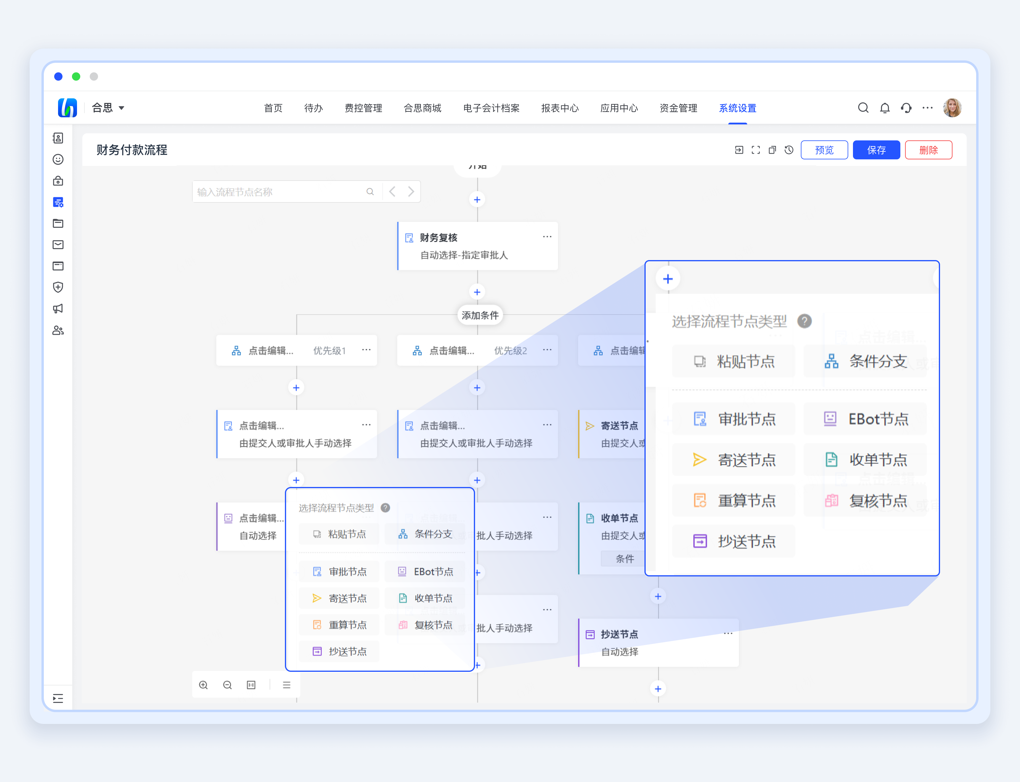 亿嘉和实现了从申请到存档的全流程闭环管理,将出差申请、消费预订、线上审批、对公支付、记账制证、合同、发票以及后续的电子档案、票据全部自动归集、储存,实现全流程自动化。业务系统实现高度集成,数据在合思的“hose”管道内充分连通,将业财融合贯彻到企业生产运营过程中的每一步。